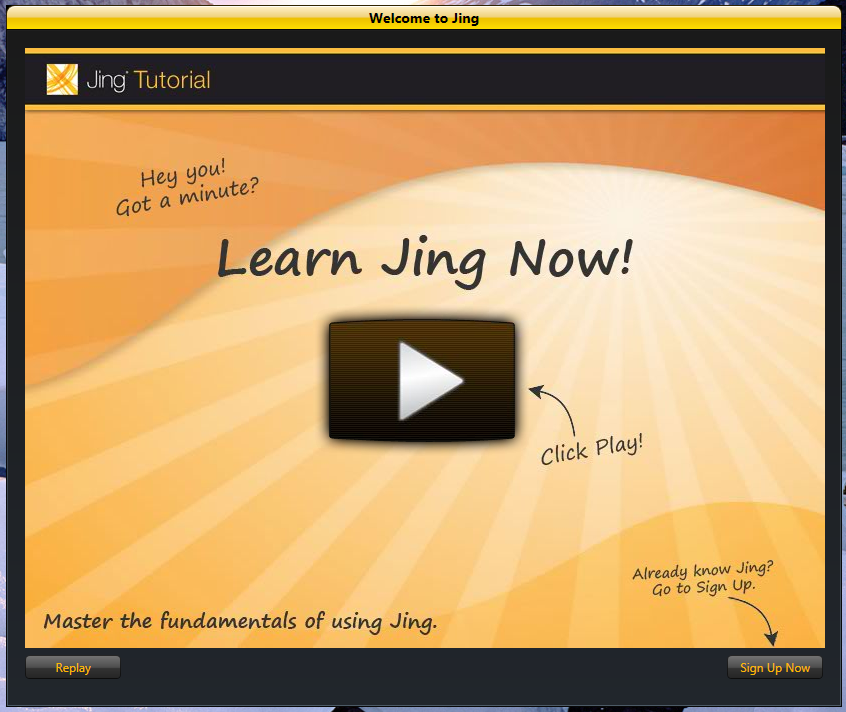 That’s it. The usual Minimize-Maximize-Close buttons from Windows aren’t there, and I don’t see a Close button. Replay just starts the tutorial video again, and Sign Up Now sounds like I have to register for something . I already created a Screencast account – I remember doing that specifically to satisfy Jing. So, as far as I know, I don’t need to sign up. Yet, the text above the Sign Up Now button seems to suggest that I should click it… but I know I already signed up, why would I do it again? Because of the resulting confusion, I see the dialog as having a poor user interface. While it is visually appealing, I’m really not sure what I’m supposed to click. I’ve also been trained to avoid registration forms – I only use them when I absolutely have to. After all, each time I register somewhere – it takes time, and the information I provide could be exposed in one more location.